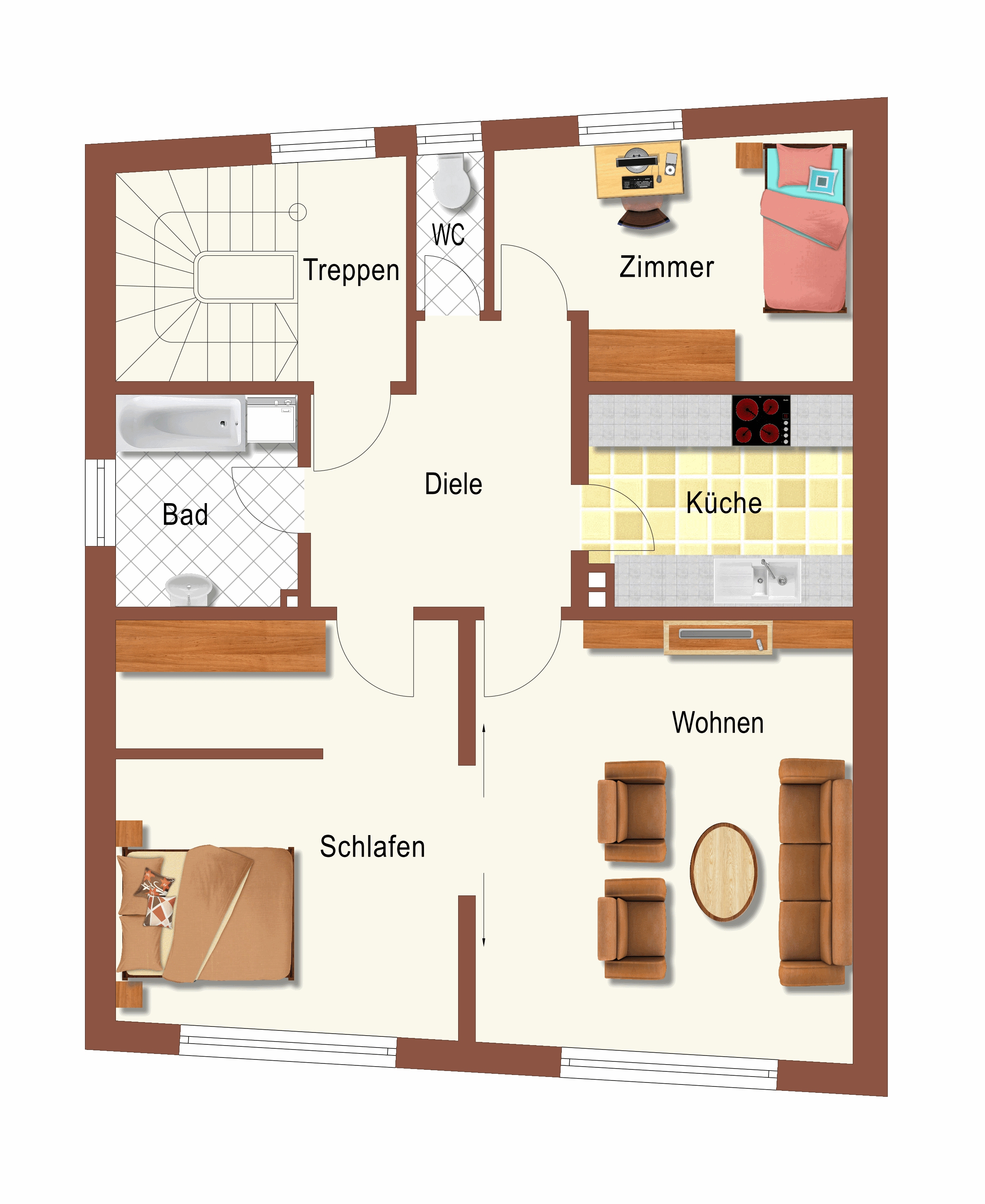 Die Wohnung besticht durch eine großzügige Diele, von der aus alle Räume bequem erreichbar sind.