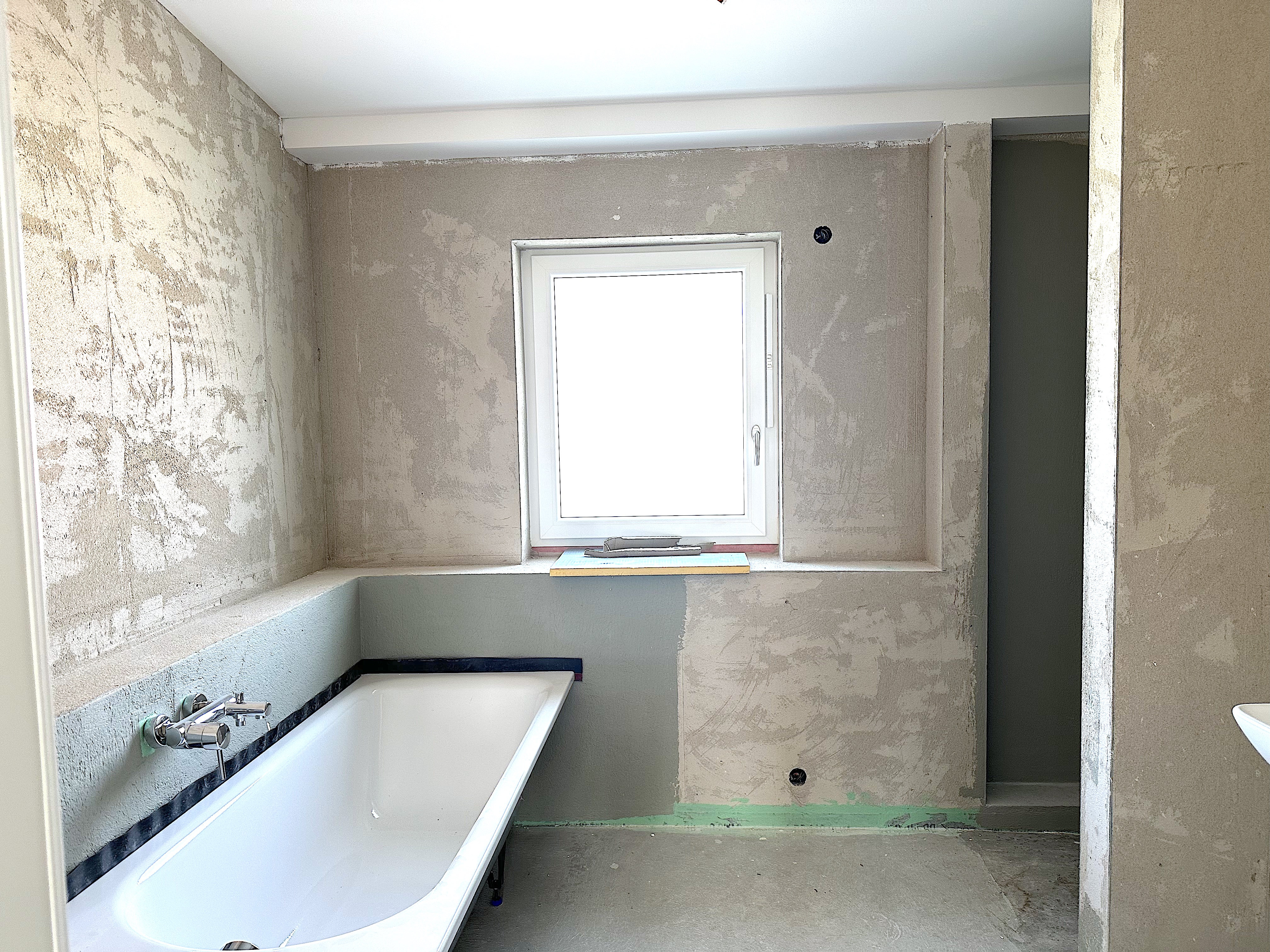 Das Badezimmer lässt keine Wünsche offen: Es verfügt über eine bodengleiche Dusche, eine Badewanne sowie ein Fenster, das für angenehmes Tageslicht sorgt. Zusätzlich gibt es ein separates Gäste-WC – ideal für Besuch. Die offene Küche ist kann mit modernen Fliesen versehen werden und bietet ausreichend Platz für kulinarische Kreationen.