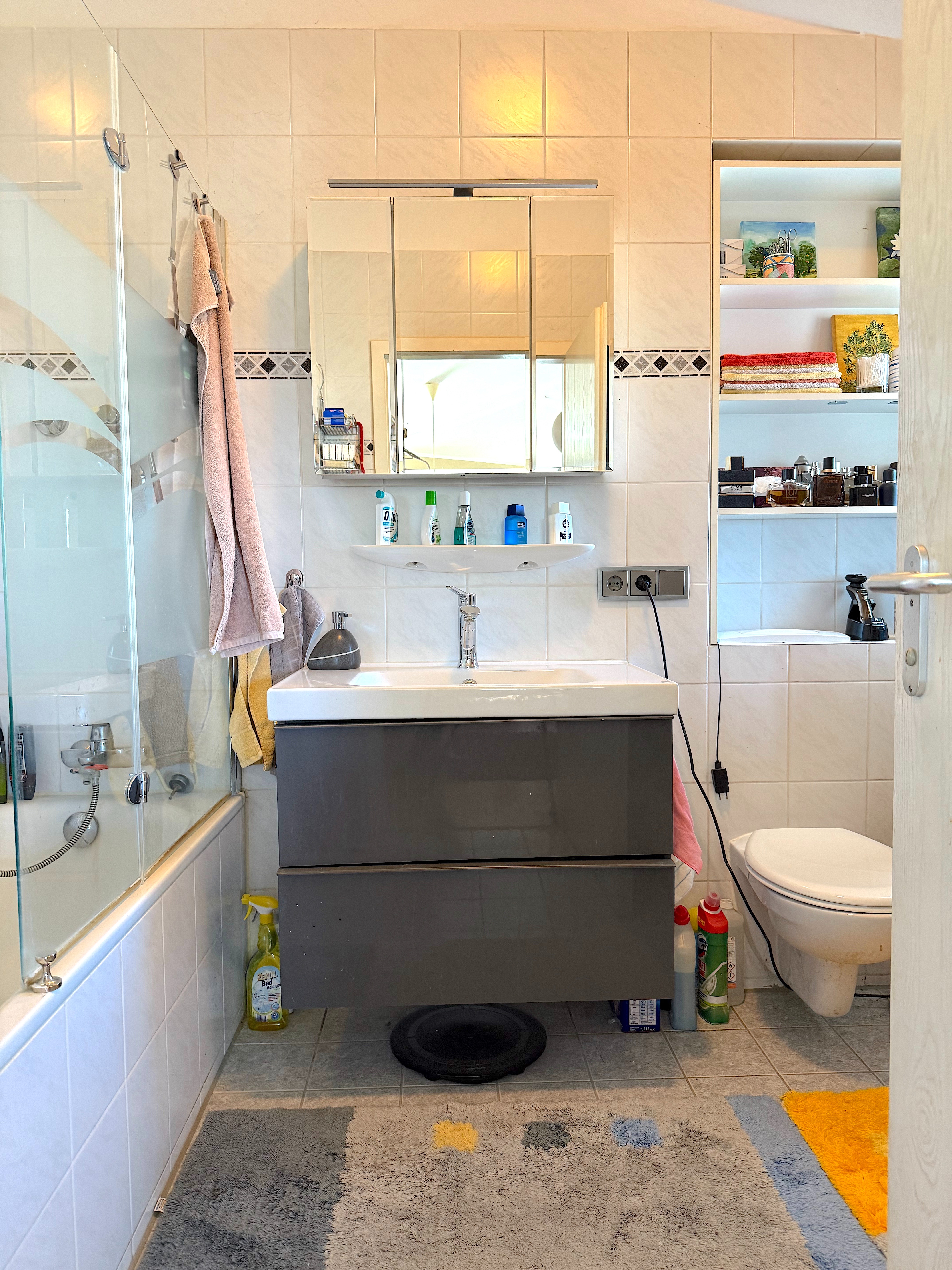 - Ausstattung des Bades Badewanne, Dusche, Fenster