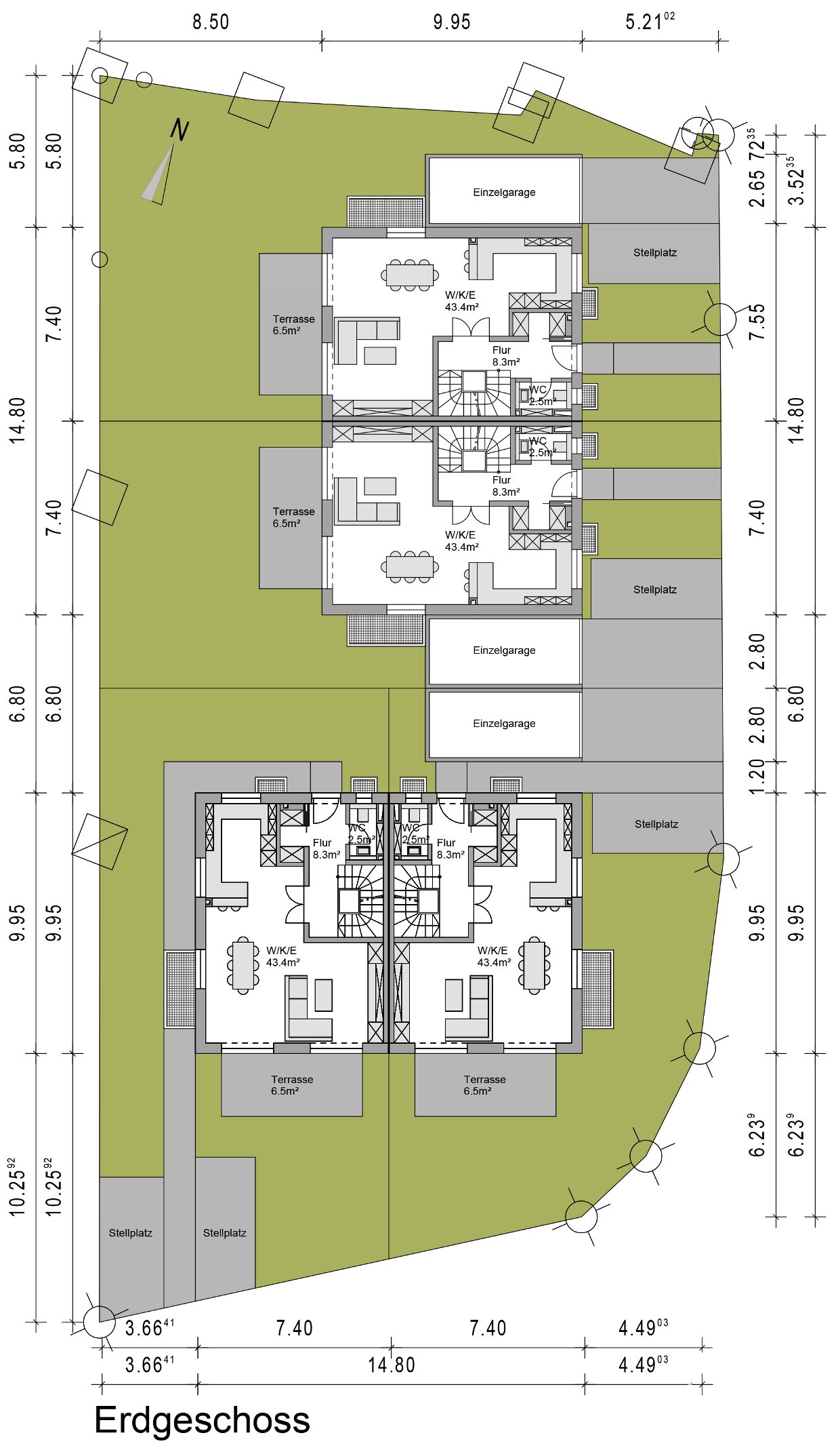 – Grundstücksanteile mit 243 m² bis 284 m² in Süd/West – Ausrichtung