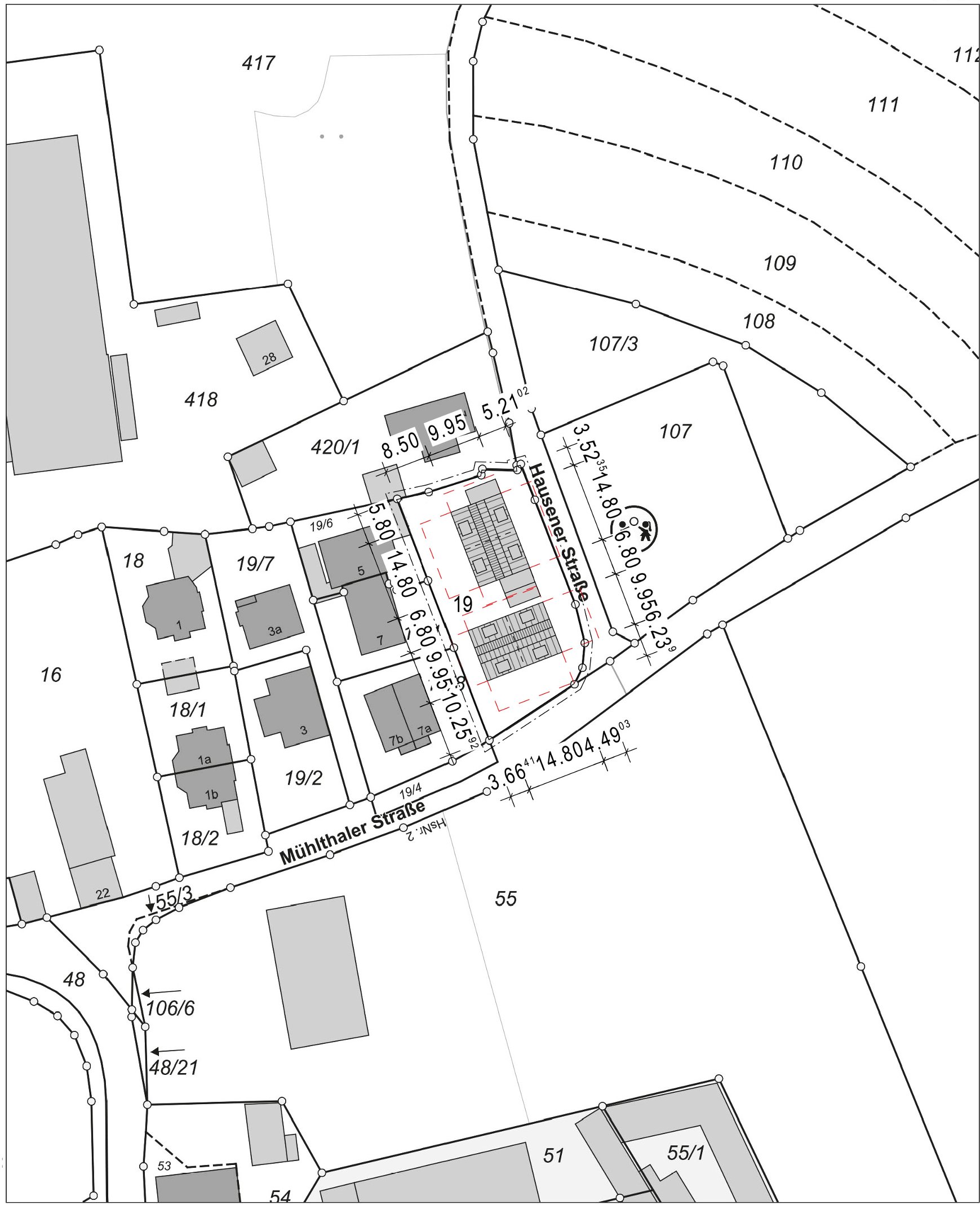 Die Lage der Gebäude auf dem Grundstück können Sie den beigefügten Plänen entnehmen.